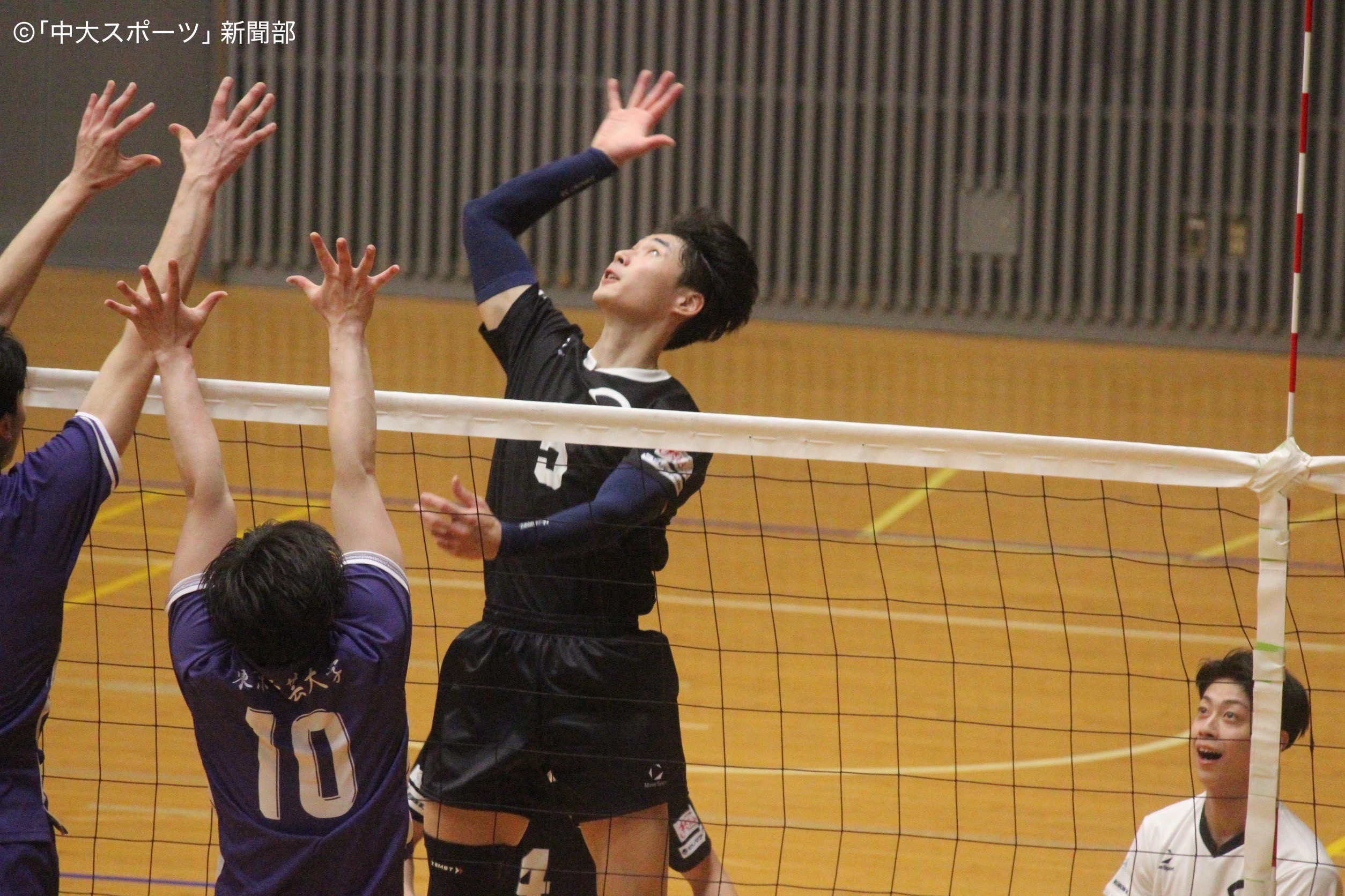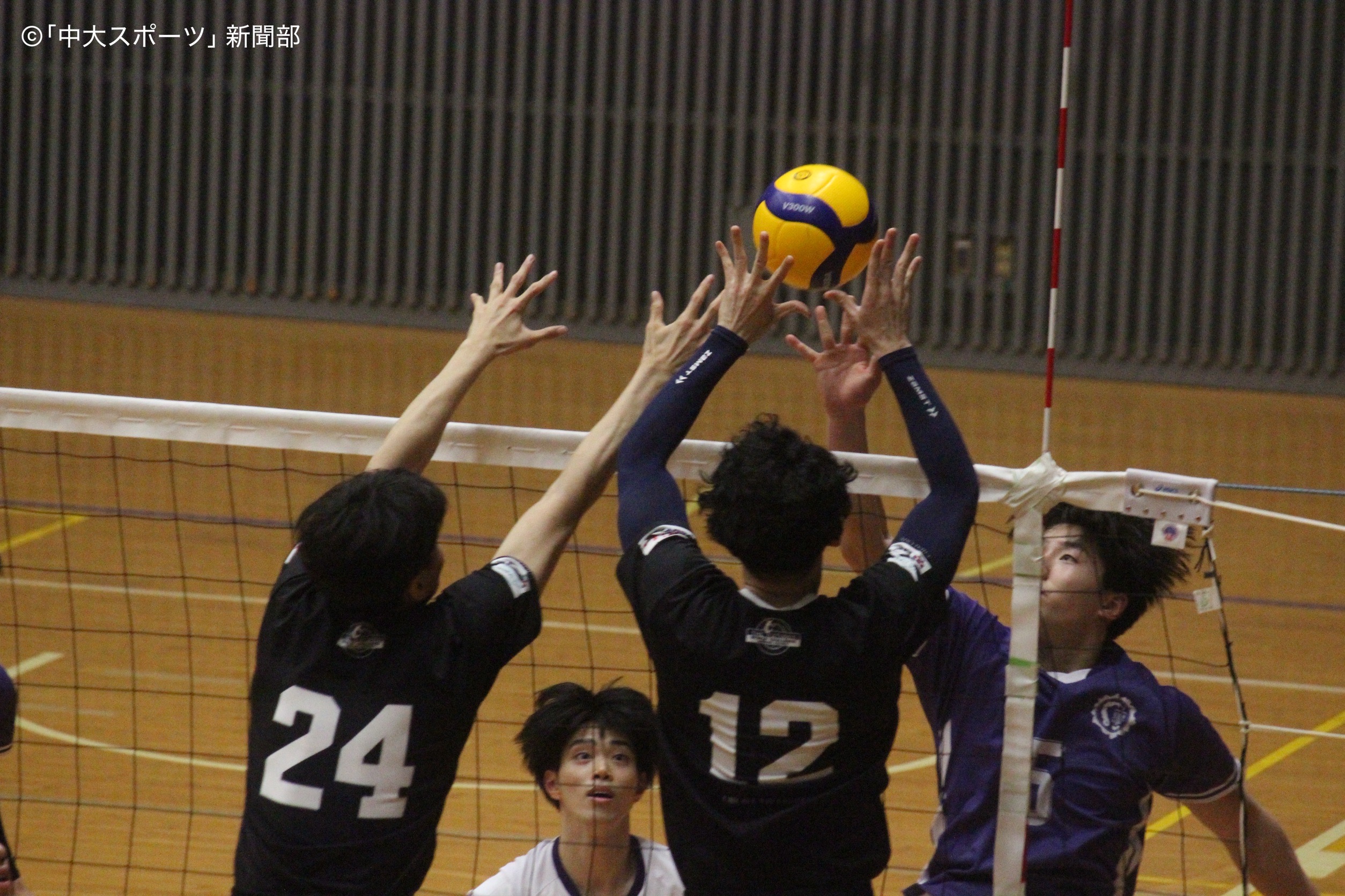 〇中大 3(25-22、25-18、25-15)0 学芸大●
