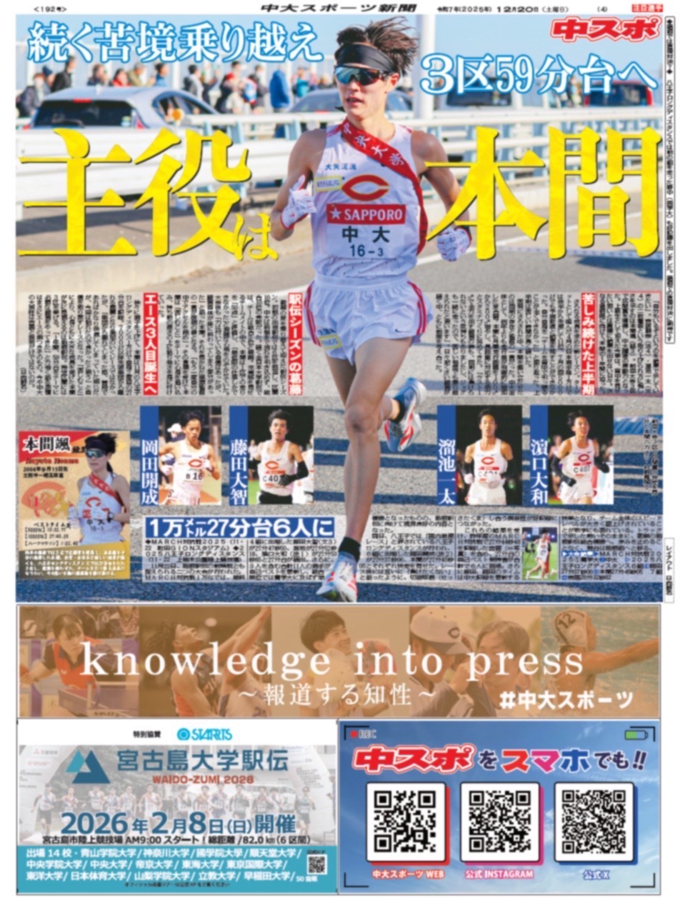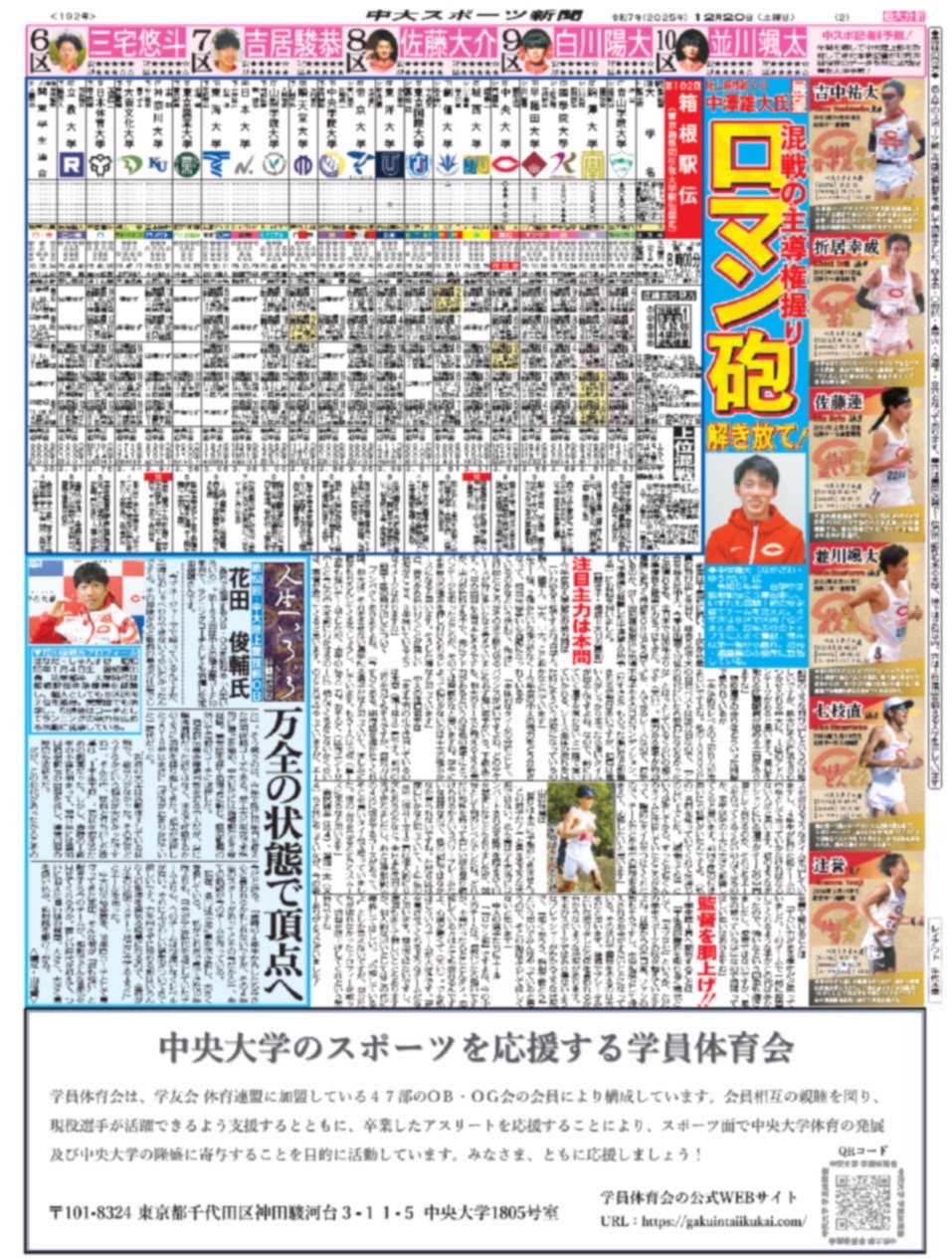 2025年12月20日(土)付で「中大スポーツ」第192号箱根号を4面構成で発行いたしました。