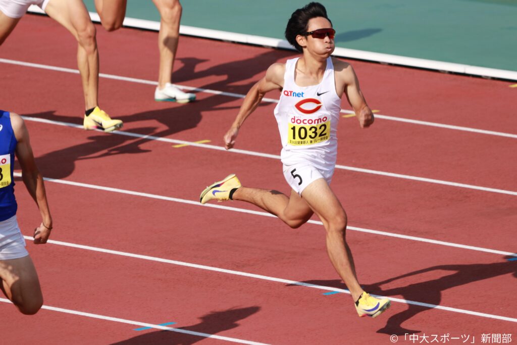 続く男子200m予選は1組に渡邉、4組に會田聖也(法1)が出場。渡邉は後半に伸び悩み5着で敗退。會田は直線で推進力を見せて、自己ベストを更新する20秒91の1着でフィニッシュした。レース後、自身の走りの点数を聞かれた會田は「80点」と答え、その理由として「20秒9台では勝負できないと感じています。自分なら上を目指せると思っているからです」と淡々と評価し、今後に控える2戦での更なる健闘を誓った。