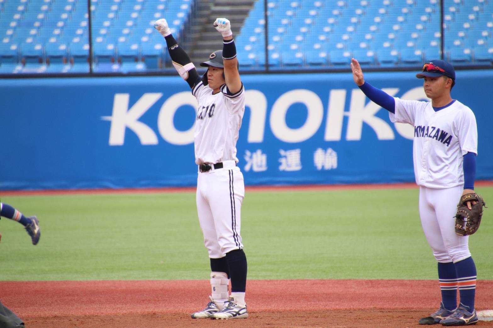 皆川はこの試合で「たぶん初めて」と振り返る5安打を放ち、東都1部リーグ戦通算100安打まで残り4本となった。皆川の好調の要因を清水監督は「4年生になってメンタル面で成長した。自分よりもチームを考えながらやっているのが結果につながっている」とほほ笑む。
