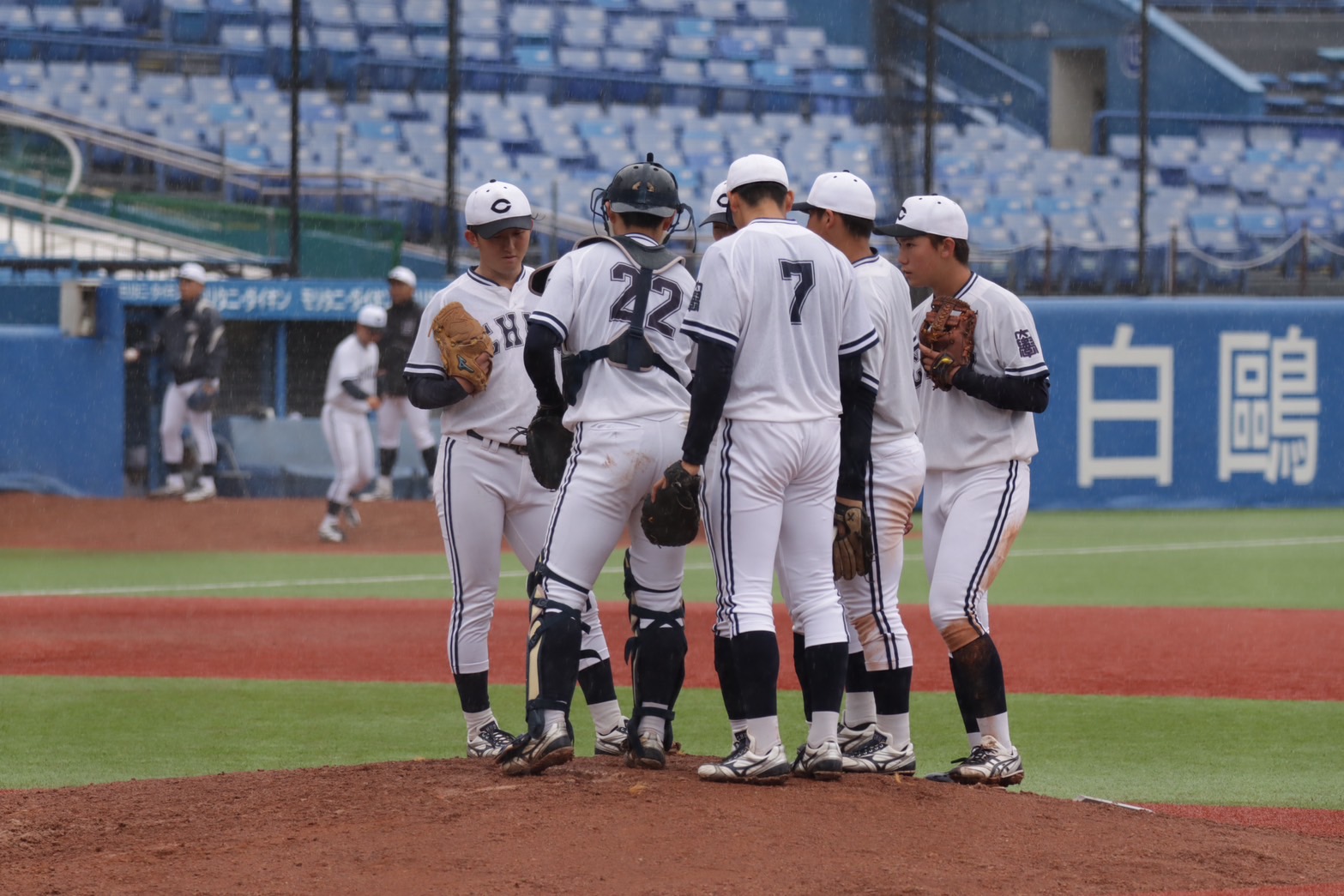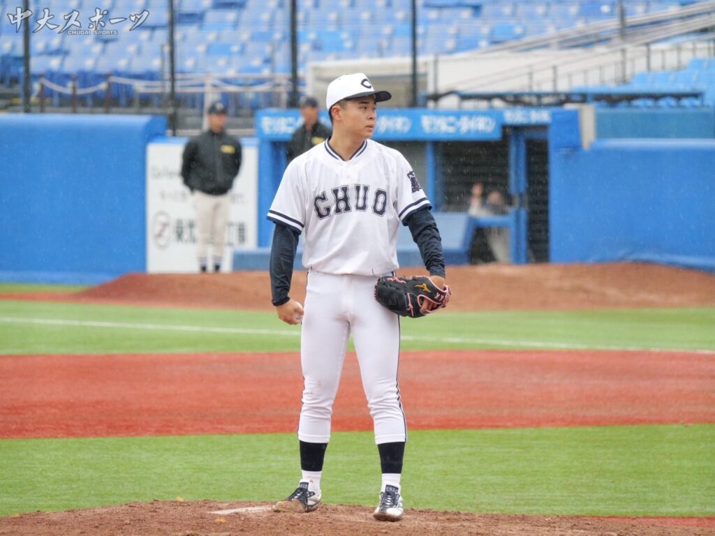 2点の援護をもらいマウンドに立ったのは、先日の対駒大2回戦で初完封初完投を達成した山口。3年春から先発を任され、厳しいリーグ戦を戦い抜いてきた山口は、経験値を武器に安定感のあるピッチングでテンポ良くアウトを積み重ねる。雨が降りしきる厳しいコンディションでの登板となったが、「いつもと変わらず投げられた。前回(対駒大2回戦)と同じように一人ずつバッターに向かっていく気持ちを大事に投げた」と自身の好投を振り返った。
