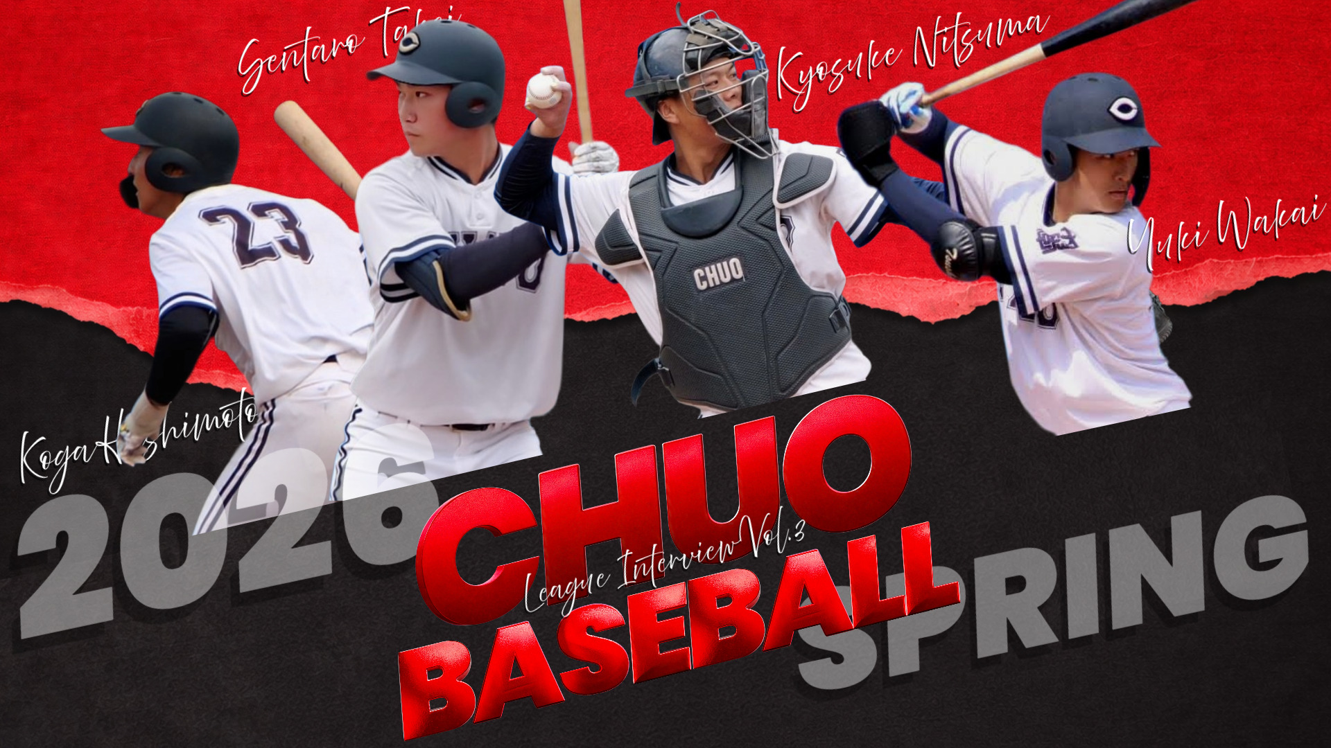 第3回は選手、新妻恭介(文3・浜松開誠館)選手、武井仙太郎(商3・鎌倉学園)選手、橋本航河(文3・仙台育英)、若井勇輝(文2・桐蔭学園)です!