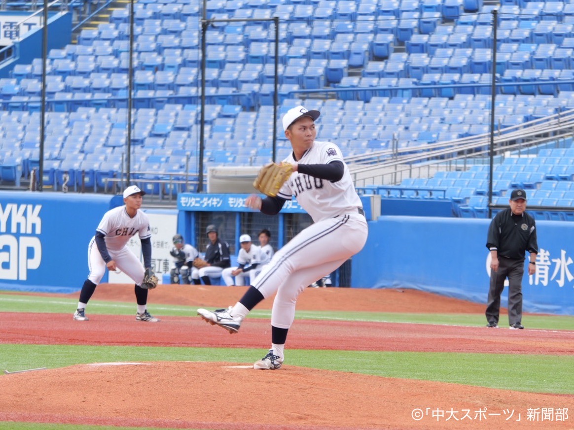 2回裏、2番佐々木琉の安打などで無一、二塁とし、4番髙橋徹の適時二塁打で2点を挙げる。続く5番安田が安打、6番伊藤櫂が四球でつなぎ、7番武井の犠牲フライで1点を追加。その後も中大打線は勢いに乗り、9番長谷川の内野安打、1番青木の押し出し四球で2点が入る。打者11人の猛攻で一挙5得点を挙げ、またもビッグイニングとなった。