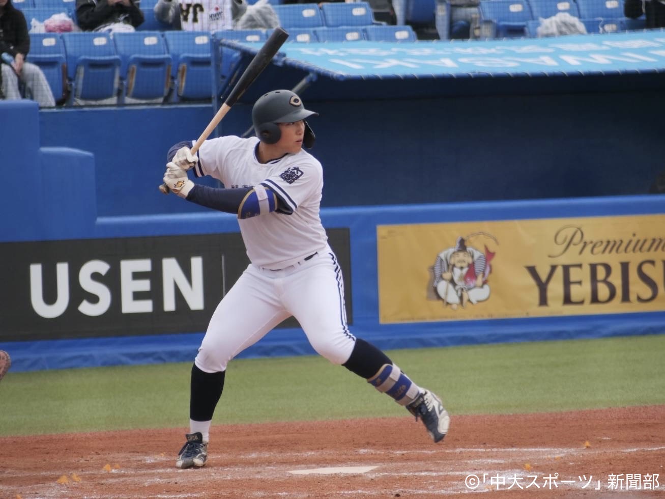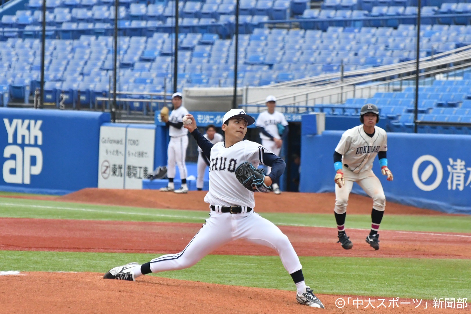 「束」のスローガンのもと、新体制でリーグ戦優勝、日本一を目指す中大。第1週は昨秋、あと一歩のところで優勝を逃した国学大と対戦する。開幕戦は序盤の集中打で試合の主導権を握り、10-4で快勝。開幕戦勝利を飾った。
