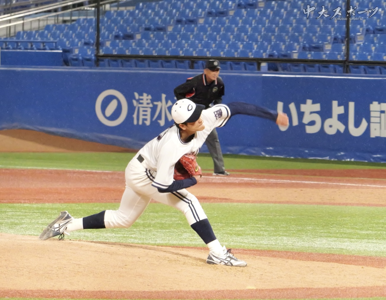 点を返したい中大だったが、8回、9回は山田の前にランナーを出せずに抑えられ試合終了。前週の国学大戦に続いて勝ち点を落とす結果となった。