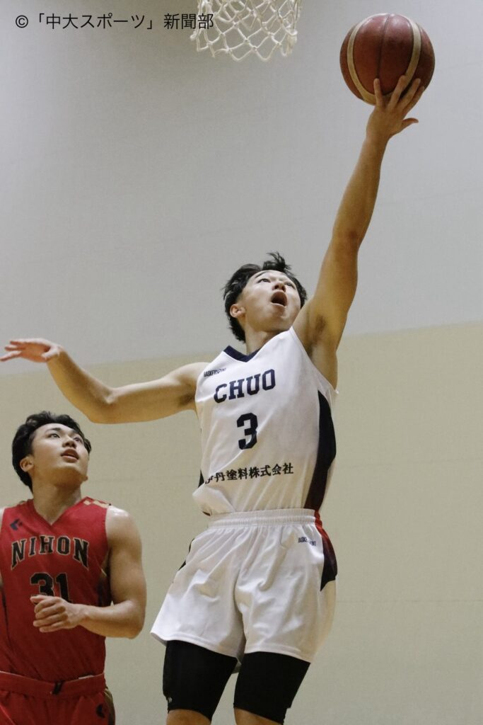 リーグ戦2巡目最初の試合で迎えた相手は日大。1巡目では日大に2点差で惜敗し、この試合は中大にとってリベンジの1戦となった。序盤からリードを維持し、危なげない試合運びで15点差をつけ勝利。2巡目の躍進に期待が高まる。