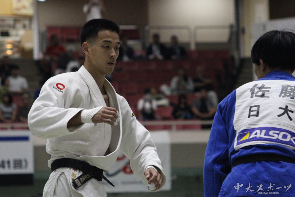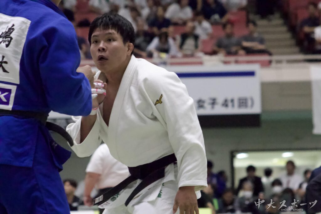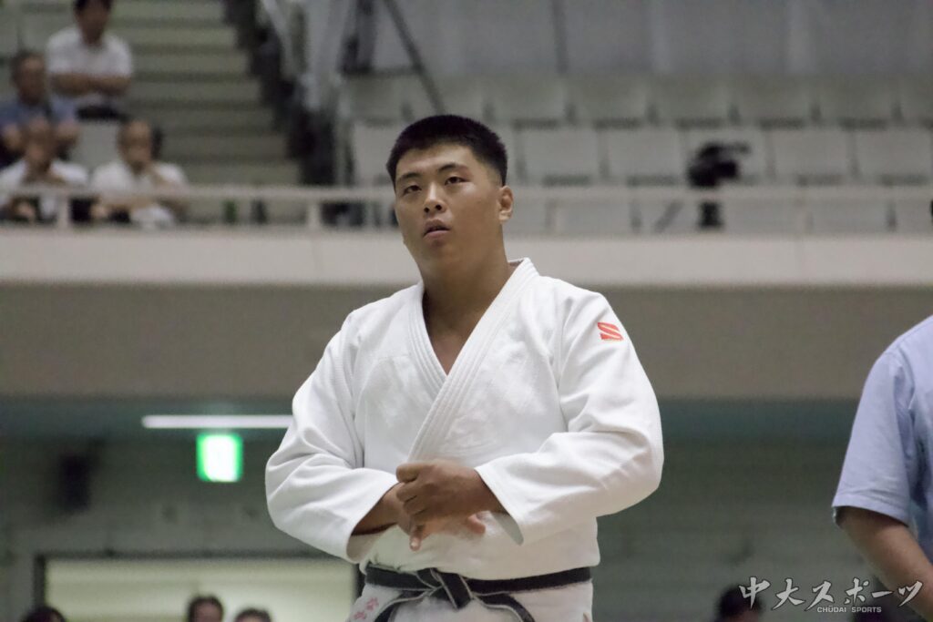 3回戦では、この日2回目のゴールデンスコア方式になった。天理大の2年生木嶋に横四方固で有効を奪われて敗北を喫した。「1回戦から続けてゴールデンスコアまでもつれたこともあり、体力的にも厳しい部分はありました。それでも最後まで集中して、チャンスを逃さないように粘りましたが、相手はやはり強豪校の選手で、自力の差を感じる場面もありました」と悔しさを見せた。
