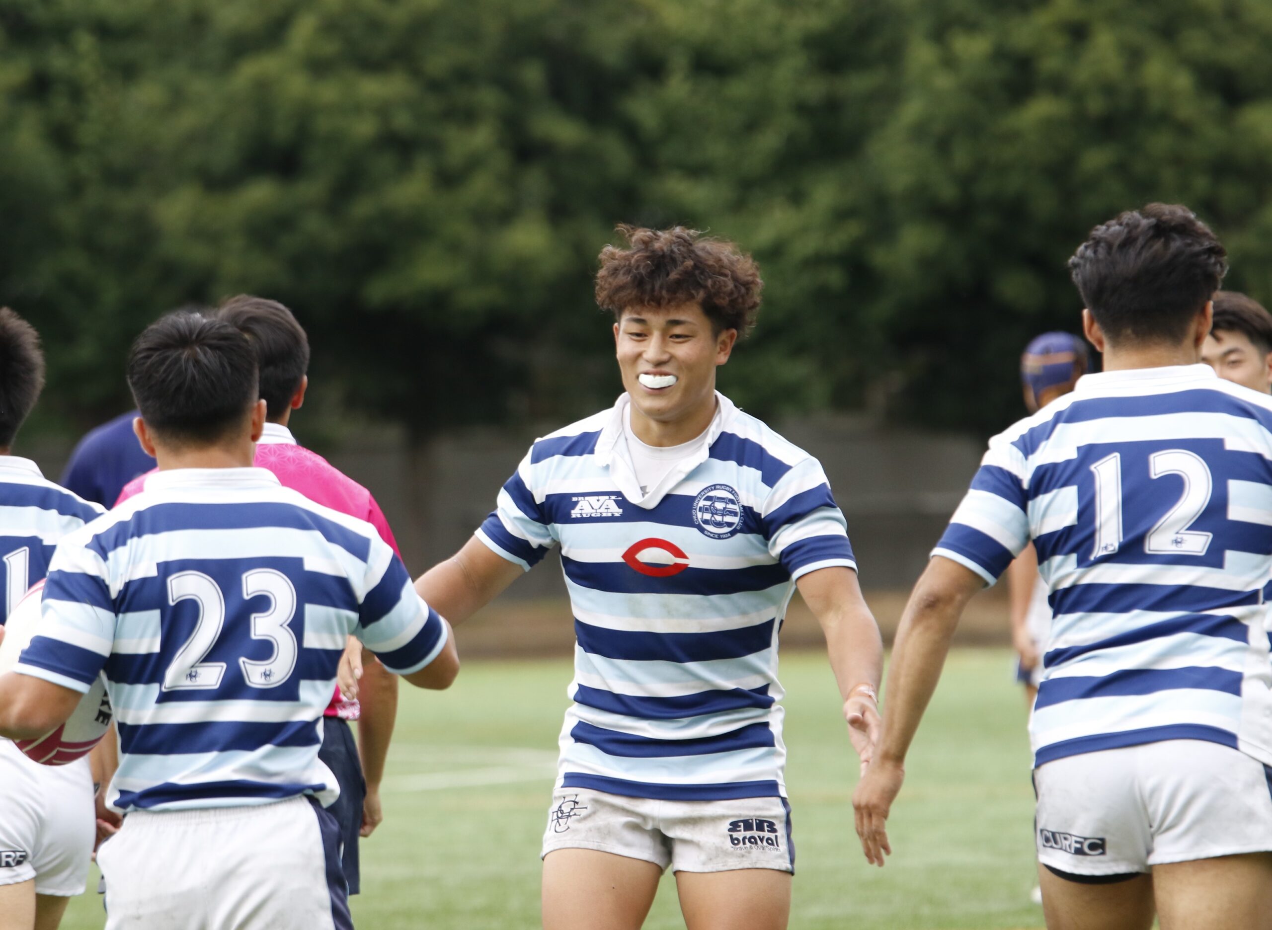後半9分、須田龍之介がタックルを振り切りトライ。吉田晃己がキックを決める。後半17分、矢富蓮(文1)がタックルを物ともせずトライ。リードを保つ。
