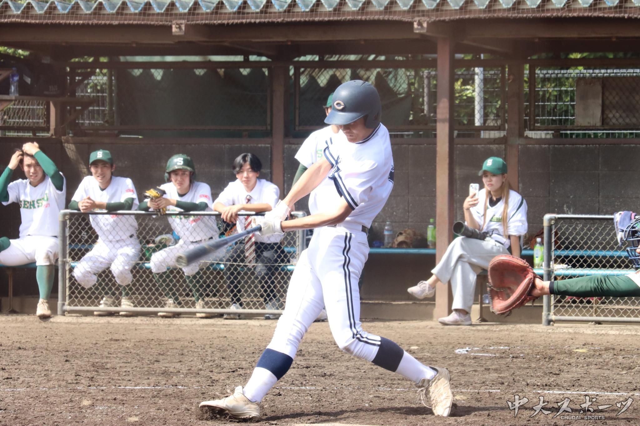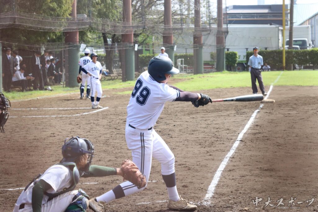 前回明学大戦で今秋リーグ1敗目を喫した中大は専大戦に臨んだ。中大は先制を許すもルーキー大野友也(商1)がホームランを含む3打点の活躍で見事逆転勝利。大野ら下級生の活躍が目立った一勝となった。