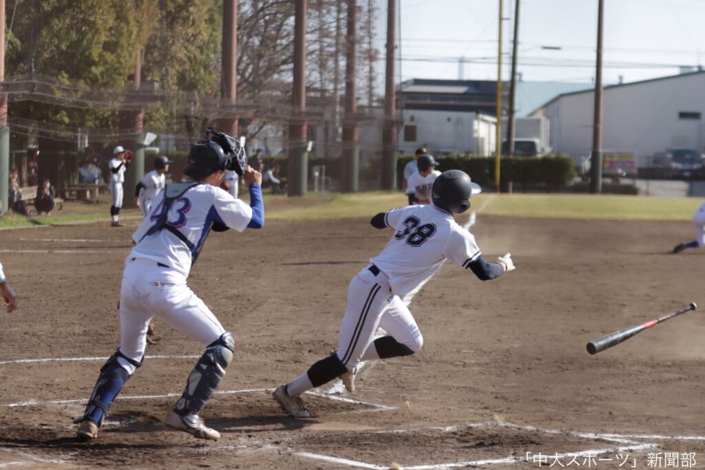 粘る先発投手を援護したい中大は4回裏、1死から片倉裕文(法3)が四球を選ぶと、香川の打席で果敢に盗塁を決める。香川の捉えた打球はフェンス直撃のツーベースとなり、片倉は生還。貴重な追加点を挙げる。