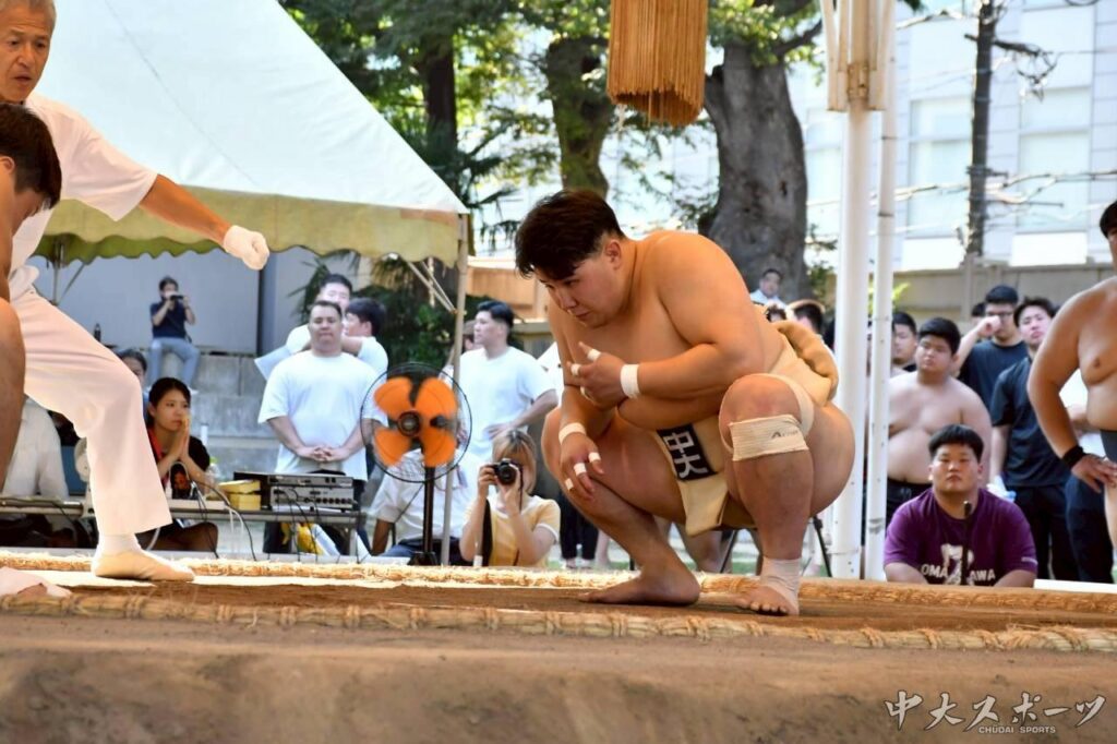 今大会に向けては立ち会いをしっかりと当たること、また四つをちゃんと組むように意識してきたと語った山田晴ノ介(法1)は初戦、「ちゃんと当たってから攻めて勝つことができた」と押し出しで突破した。しかし、続く2回戦は埼玉栄の先輩である神崎(日大)にすくい投げによって敗戦した。試合後のインタビューでは、「勝負を早く決めるために投げに行ってしまった」と悔しさを滲ませた。