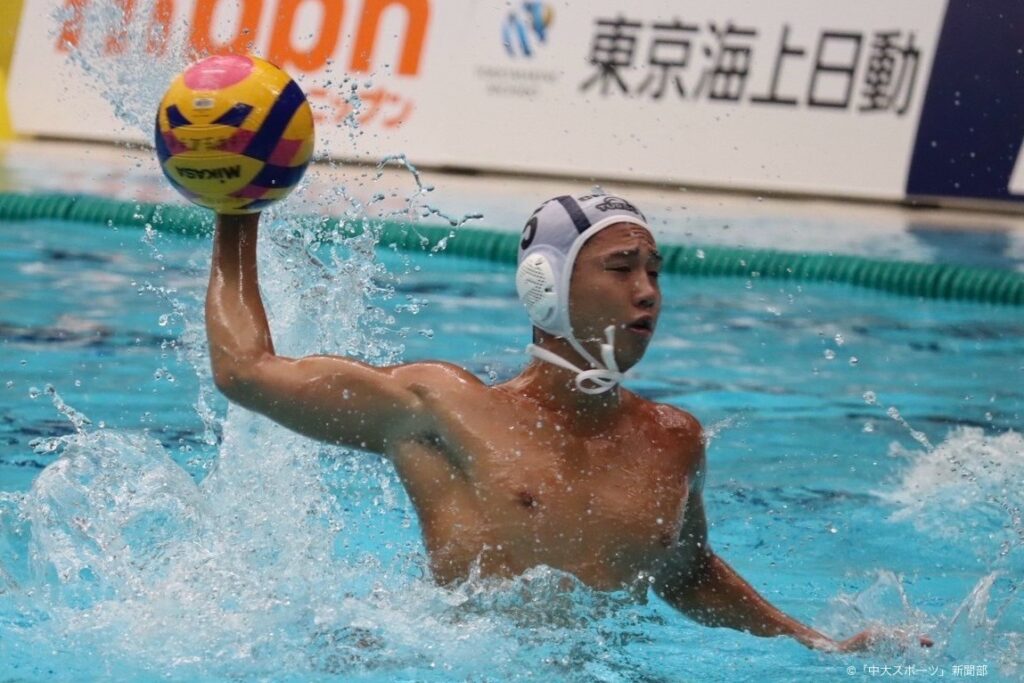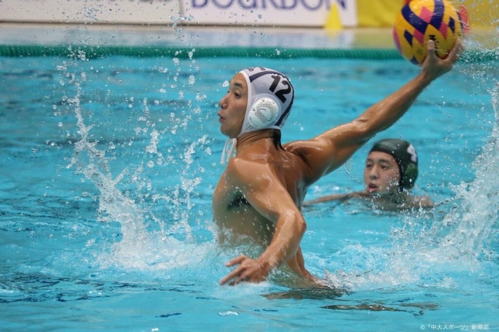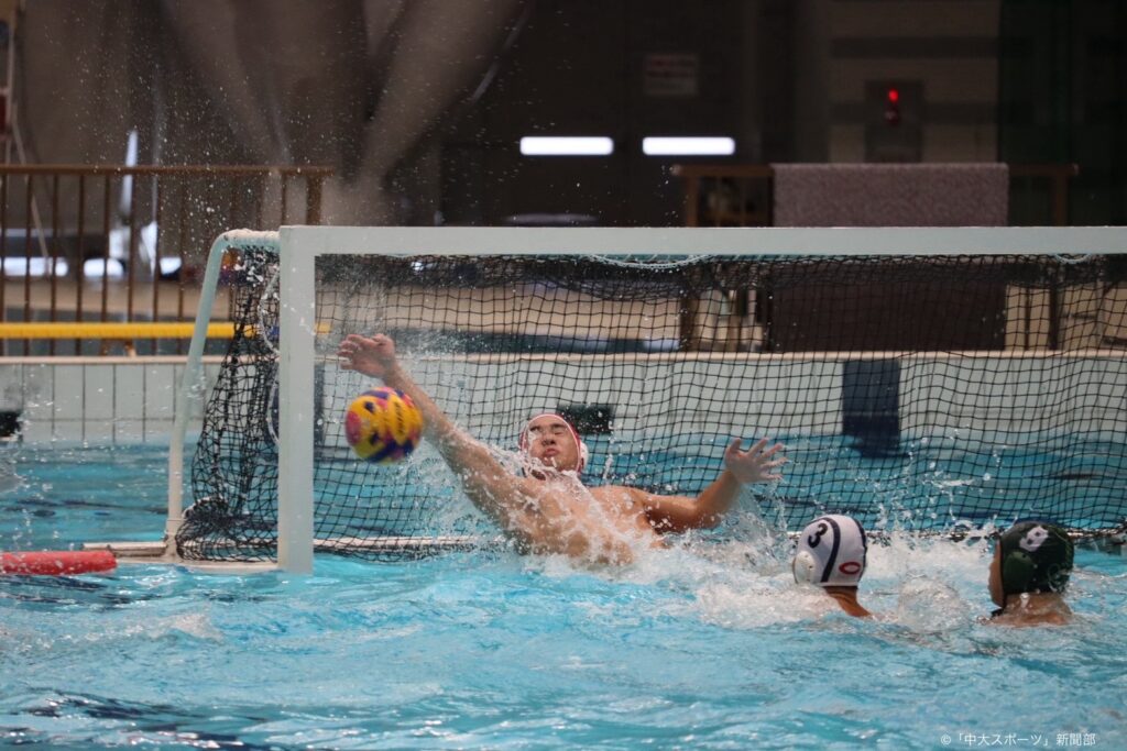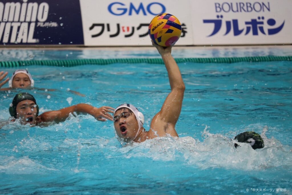 守備からもう一度流れをつかみたい中大は、専大の先制攻撃を防ぎ、幸先のいいスタートを切った。しかし、船水淳希(文4)の攻撃は時間切れとなってしまう。反対に、専大は3連続得点。4点にまで点差が開いてしまった。中大はタイムアウトを取り、「まだ4点差いけるいける」と励まし合う。気合いを入れ直した選手たちは、守りで粘りを見せる。8回に及ぶ専大の攻撃のうち、3回はディフェンス陣の活躍でシュートを防ぎ、2回は安田がセーブした。試合時間残り2分5秒、船水がペナルティスローで得点。4年生の意地を見せるが、勝利を確信しますます勢いづく専大はさらに2得点。11-17と、悔しい逆転負けで、試合は幕を閉じた。