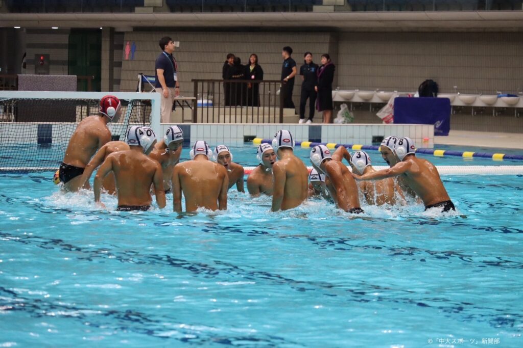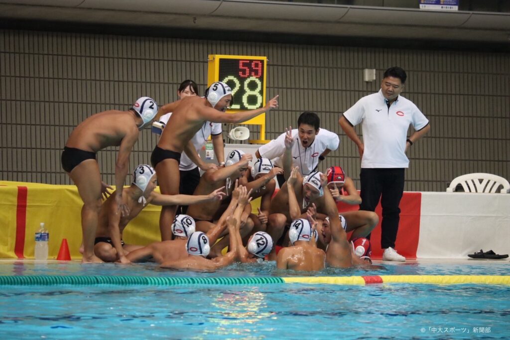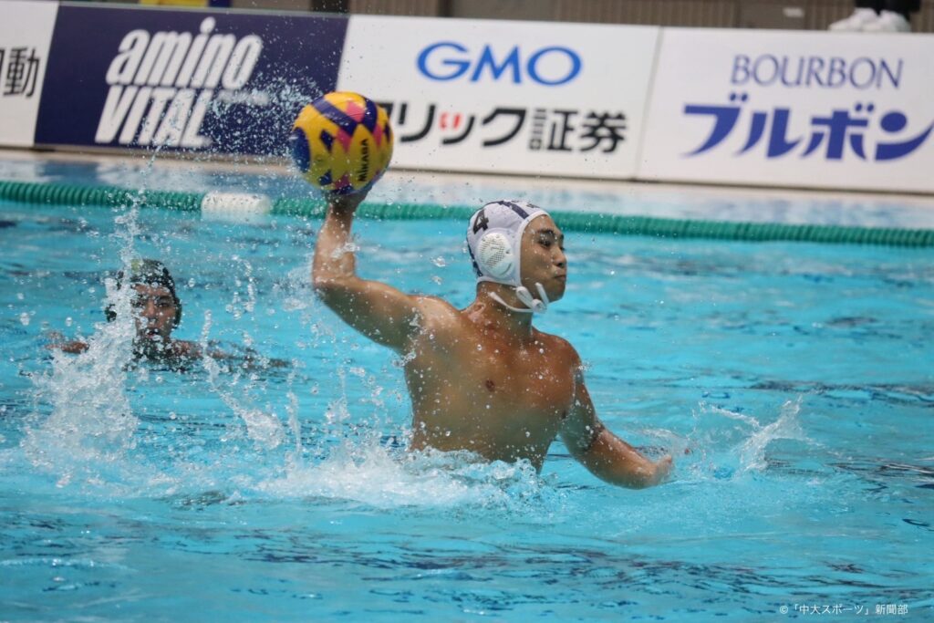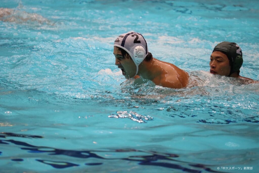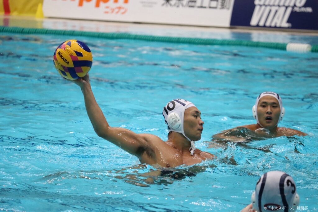 守備からもう一度流れをつかみたい中大は、専大の先制攻撃を防ぎ、幸先のいいスタートを切った。しかし、船水淳希(文4)の攻撃は時間切れとなってしまう。反対に、専大は3連続得点。4点にまで点差が開いてしまった。中大はタイムアウトを取り、「まだ4点差いけるいける」と励まし合う。気合いを入れ直した選手たちは、守りで粘りを見せる。8回に及ぶ専大の攻撃のうち、3回はディフェンス陣の活躍でシュートを防ぎ、2回は安田がセーブした。試合時間残り2分5秒、船水がペナルティスローで得点。4年生の意地を見せるが、勝利を確信しますます勢いづく専大はさらに2得点。11-17と、悔しい逆転負けで、試合は幕を閉じた。